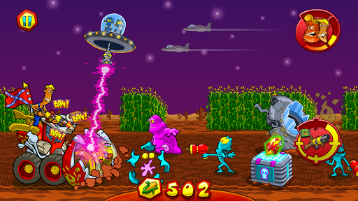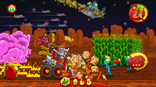 Ajude os dois irmãos Joe e Otis: pegue a espingarda, o lançador de foguetes mortais ou um rifle de caça e ligue o motor da herança da família – o poderoso ceifador de milho! Corra pelos campos e acabe com esses invasores de pipoca com as lâminas afiadas de seu trilhador! Use a mira para derrubar as naves deles e evite os obstáculos no campo para colher o milho que restou! A invasão mais louca de terceiro grau acabou de começar!